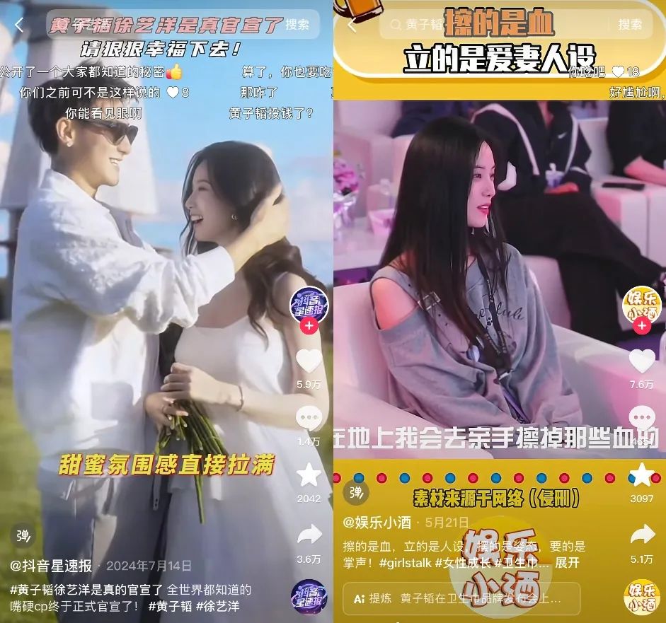 2024 年 7 月亮,黄子韬在抖音上发布了一段与女友徐艺洋的官方公告视频。随后,他还在抖音上与女友开始了合体直播,频繁释放他们的爱情日常生活,并正式宣布结婚。在这些资料中,网友们看到黄子韬是一个“爱情大脑”的霸主,被一个温柔知性的大女人许艺洋紧紧“抓住”。这种霸主宠爱妻子,百试不爽;