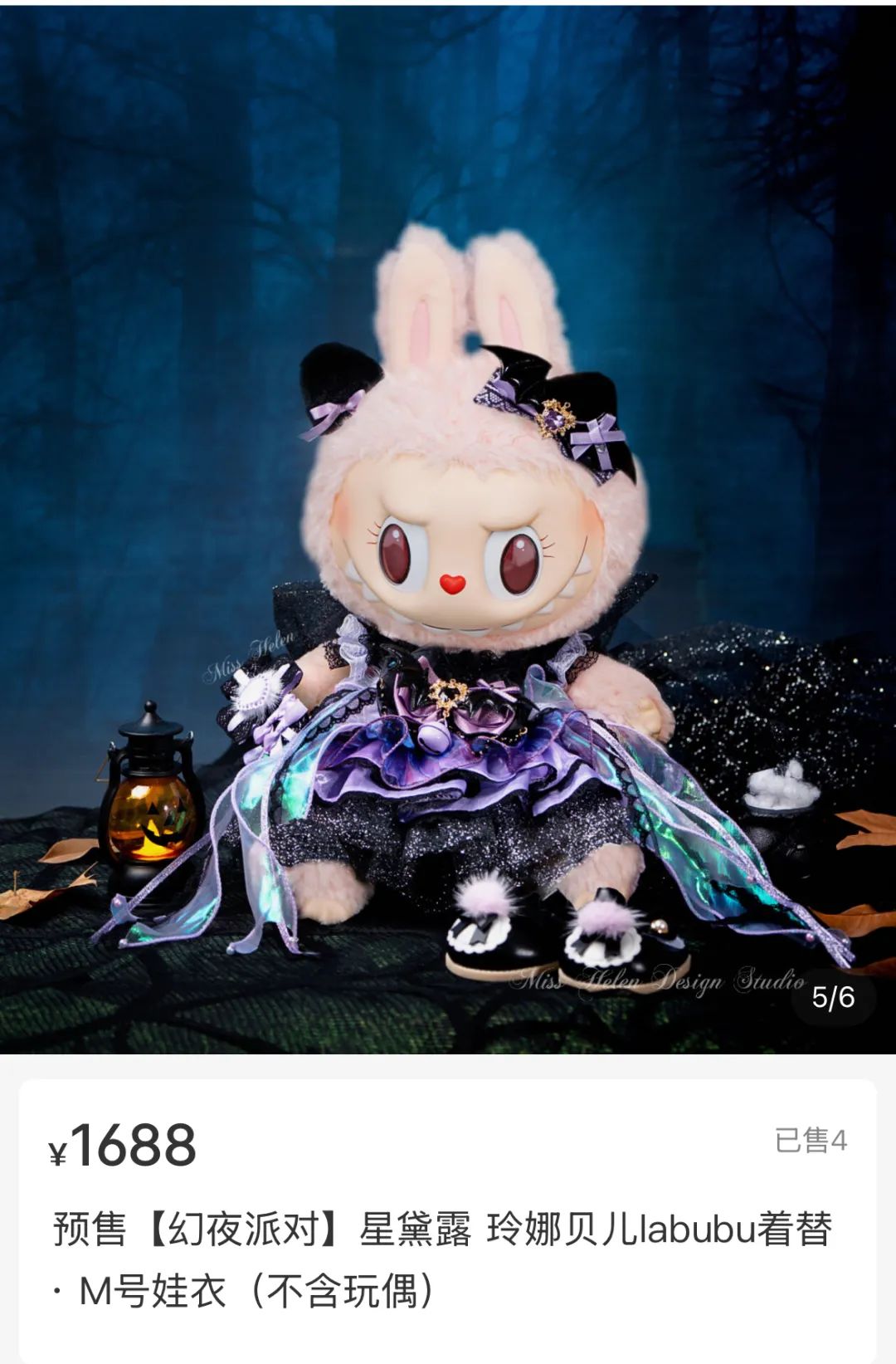 娃娃衣服就是给娃娃穿的衣服。从芭比娃娃开始,BJD(球形关节娃娃)再到近几年火起来的棉花娃娃,娃娃“改装”的消费市场早已成熟。伴随着Labubu大火,娃衣市场再次进入聚光灯。戴上巫师帽成为法师,举起剑盾成为国王,穿上云肩在舞台上唱歌...在网络平台上,年轻消费者热衷于改装Labubu的个性,展示自己娃娃的OOTD(今天穿的)。而且这也给一些人带来了“致富经”。