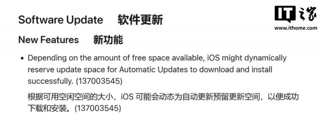 IT 该系统将根据设备的剩余存储空间智能分配和更新所需的空间,并附上下面的官方发布截图,从而解决存储空间不足的问题,确保更新文件能够顺利下载和安装。