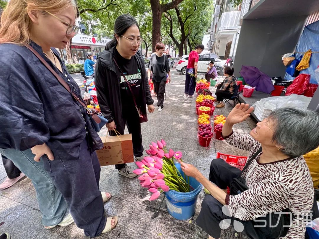 在白塔西路,一年一度的荷花市场如期而至。在市场上,10元可以购买5朵含苞莲花或4朵绿色莲花,价格亲民,吸引游客争相购买。