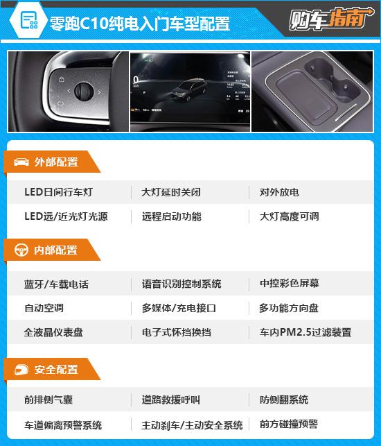 2026 款零跑 C10 纯电动入门级车型是厂家指导价。 12.28 万元的 530 舒享版。尽管是入门级车型,但整体表现并不差,如前侧气囊、透明底盘等。 /540 安全、方便、舒适的配置,如度影像、全速自动巡航、自动大灯、自动空调等。之所以不推荐入门级车型,主要是因为还有性价比更高、续航里程更长的车型可供选择。