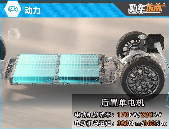 动力方面,新车提供两种动力:增程和纯电。选择增程车型 1.5L 发动机 由单个电机组成的动力系统,发动机的最大功率 电动机总功率70kW 电动机总扭距170kW 320N · m,CLTC 纯电续航里程 210km。纯电动车型配备后置单电机,电动机总功率分别为 170kW 和 220kW,电动机总扭距分别为 320N · m 和 360N · m,CLTC 纯电续航里程分别为 530km、605km。