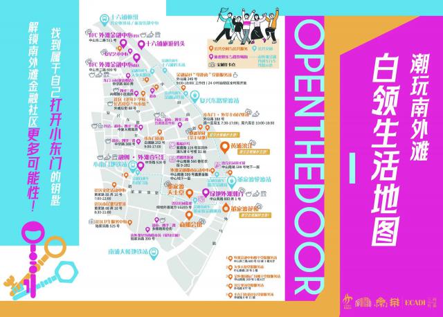一张“潮玩南外滩”白领生活地图的发布,引起了东门白领的高度关注,不同于平时严格按比例绘制的行政地图。这张手绘生活地图标有 17 社区公共空间和公共服务,18 10个休息娱乐和餐饮购物场所 多个宝藏打卡点。
