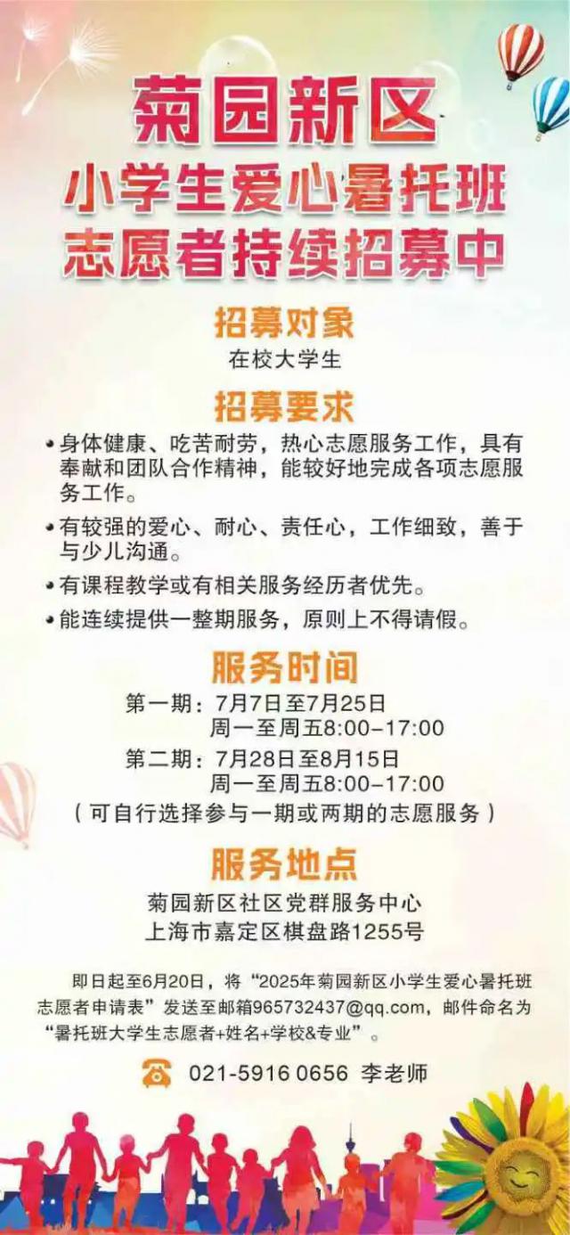 报名需要填写《2025》 年菊园新区“人才汇菊”大学生暑期实践报名表”发送至邮箱 1319723356@qq.com,报名时间为即日起至 6 月 23 日期结束。请注意邮件主题:2025 年菊园新区“人才汇菊”大学生暑期实践活动 名字。