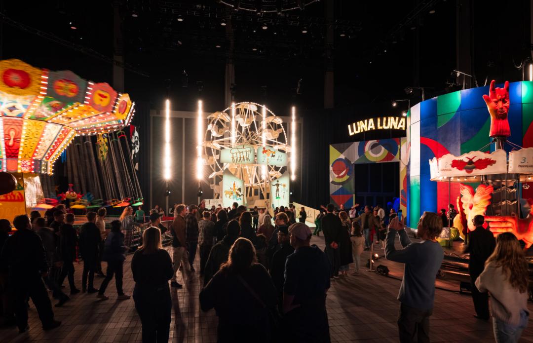 在2024年重启的LUNANA中,肯尼·沙夫“艺术属于街头,更属于每个人”的理念 在LUNA艺术游乐园中,巴斯奎特设计的摩天轮、哈林的旋转木马和沙夫的旋转秋千使艺术成为一种流行的狂欢。