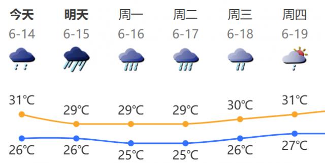 深圳气象台预报,我市今天阴天,有暴雨;温度 26-31 ℃;偏南风 3-4 等级、沿海地区、高地和海区最大阵风逐渐增大 9 水平左右;相对湿度 80%-100%。