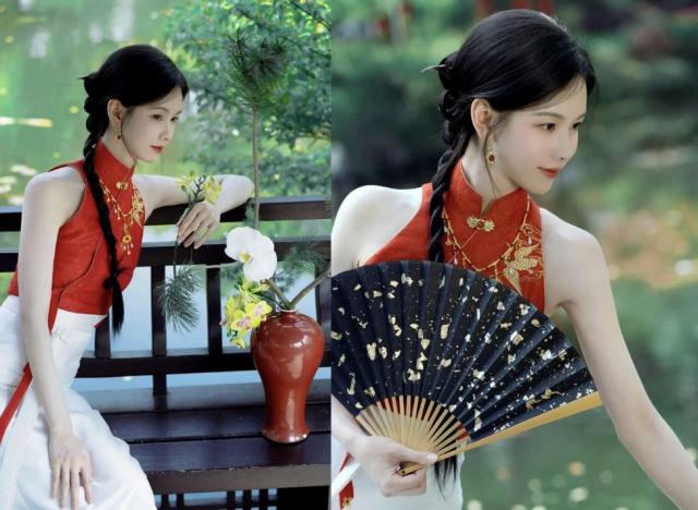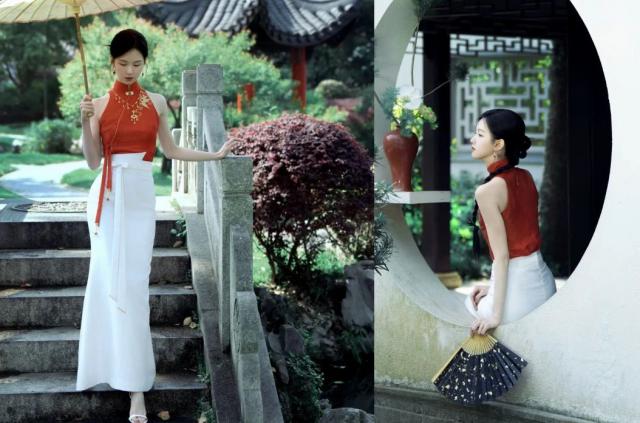 但在配色其实宫墙红是一种可以衬托肤色的颜色,搭配白色也没有那么膨胀,增强了整体着装的大量留白,让服装不会太端庄,而是恰到好处的优雅,红白配色相辅相成。