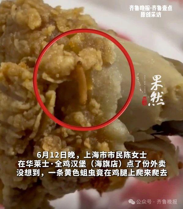 根据齐鲁晚报的报道,6 月 12 当天晚上,网友陈女士在社交媒体上发布了一段视频,称一条活蛆从她买的华莱士炸鸡腿里爬了出来。“那时候我整个人都不好,恶心死了!”