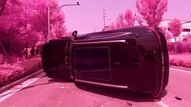 一辆车突然翻车