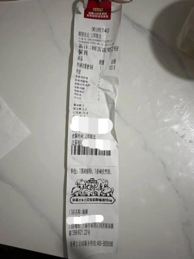 陈女士提供的外卖小票。来源受访者。