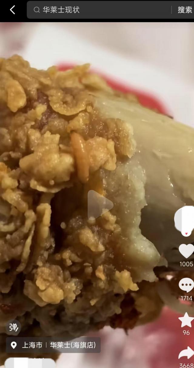 华莱士炸鸡腿吃活虫?上海市监察局回应:活虫来源正在调查中