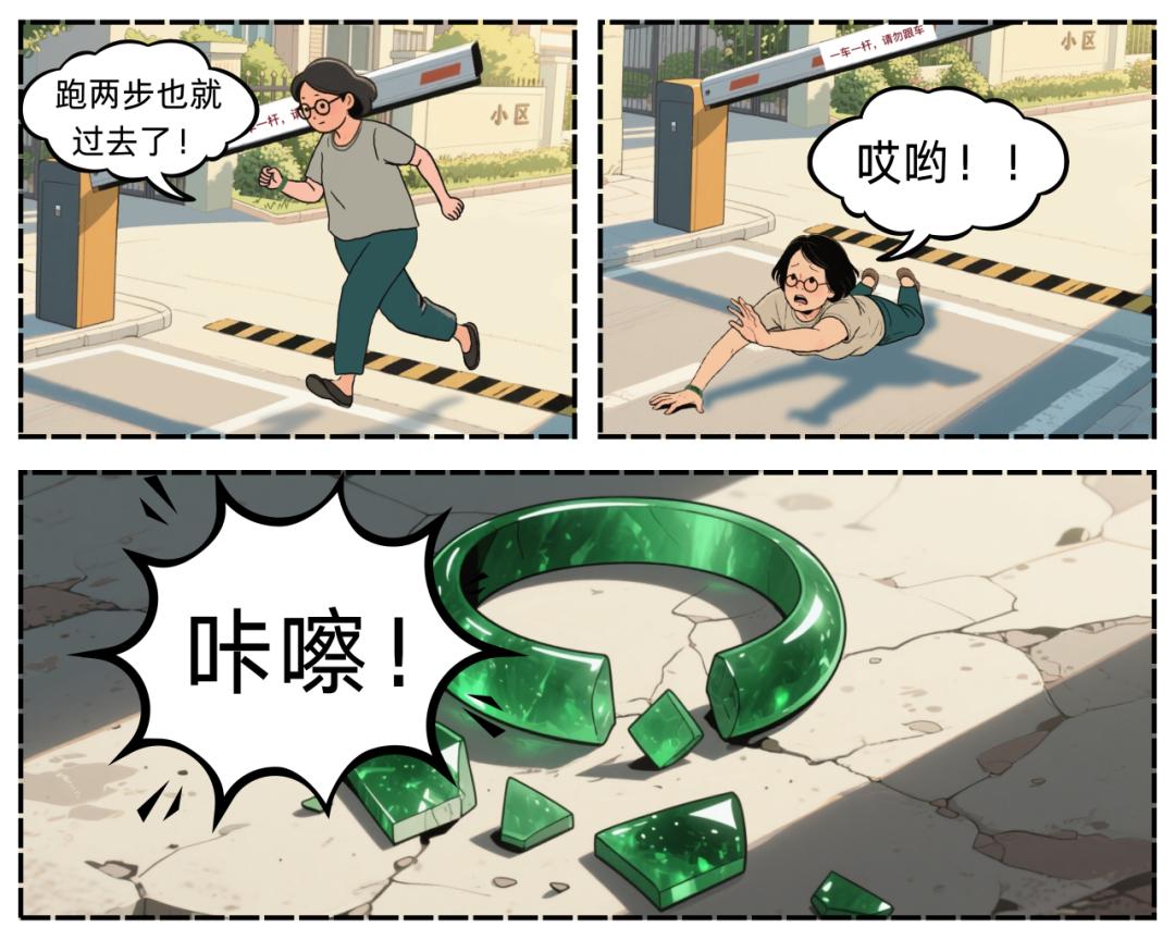 原题:“车行道栏杆降落砸碎行人玉镯,谁来承担损失?”