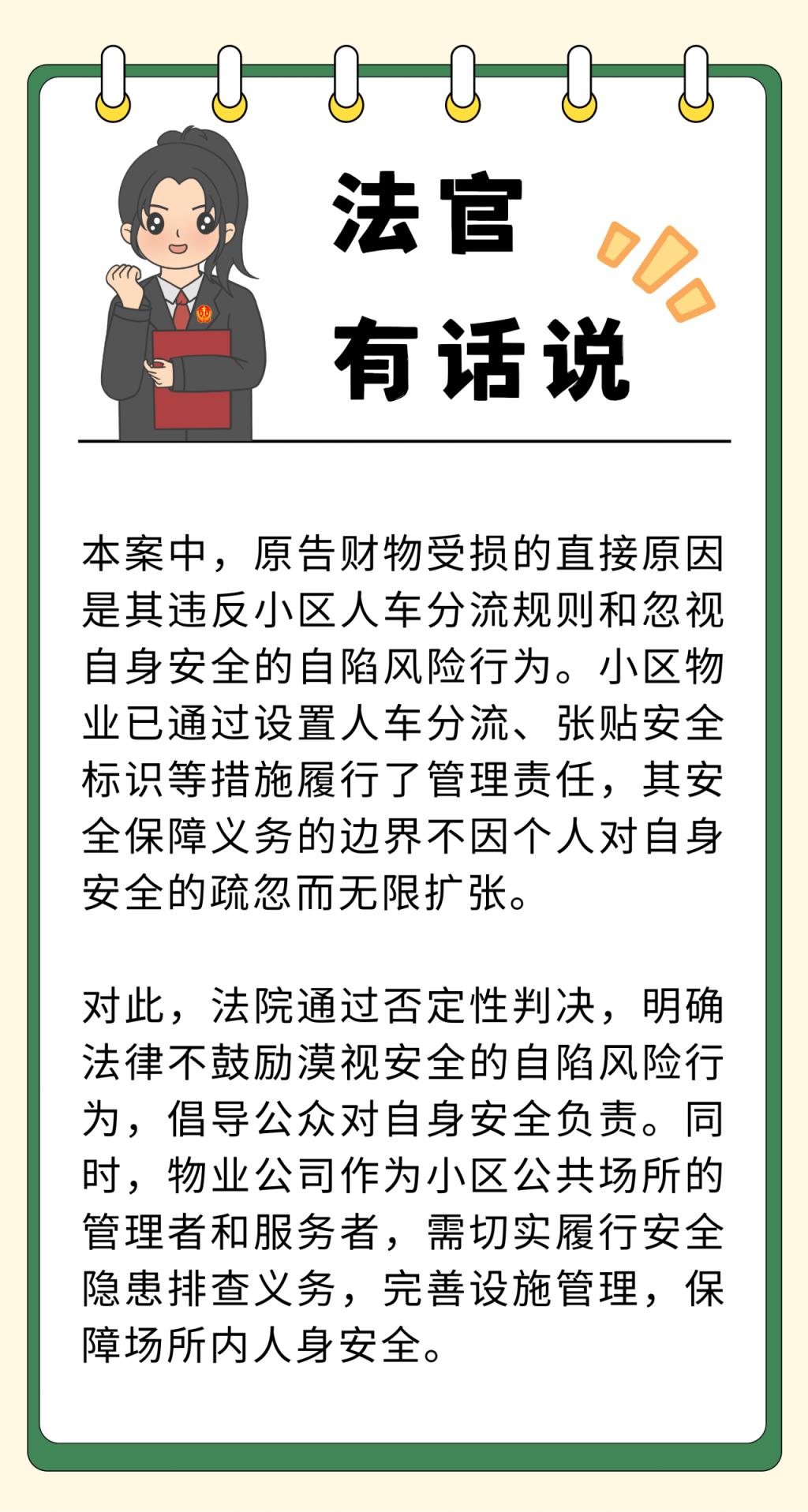 其次,住宅物业的服务管理责任主要包括维护管理、环境管理、安全管理等。,应控制在合理的范围内,责任不应过于严格。涉案社区通过开放式社区设计、设置警示标志等措施履行了基本工作职责,护栏瞬间降落,要求管理者即时干预超出合理范围。因此,物业公司已经履行了必要的管理和注意义务。