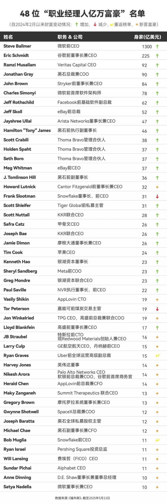 今年,在美国附近 900 在亿万富翁中,有一位48 名为“打工皇帝”以丰厚的工资待遇积累了十位数的财富,成功上榜。