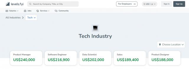 基于科技产业薪酬网站 levels.fyi 统计,2024 年度科技行业各岗位工资数据如下� �