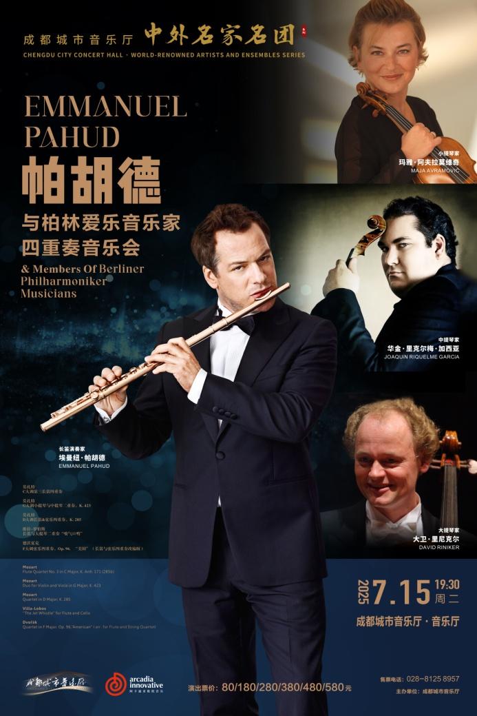 这个夏天, 帕胡德,长笛大师(Emmanuel Pahud)成都城市音乐厅将与柏林爱乐乐团的三位音乐家一起亮相。四位音乐家将携手为观众演绎莫扎特、德沃夏克等作曲家的经典作品,带来精彩的音乐盛宴。