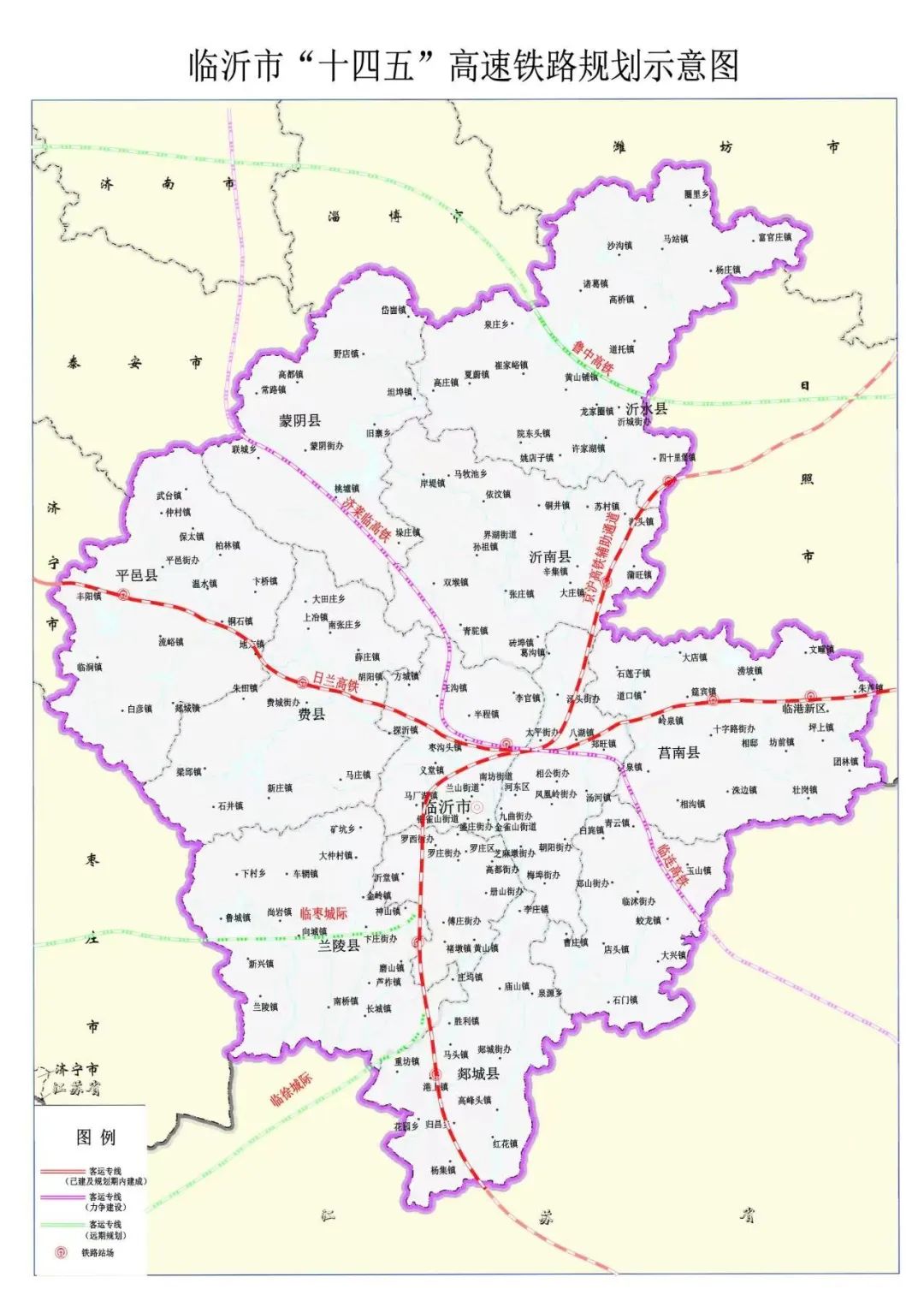 其中,临沂北站高架站房总规划建筑面积10万平方米(主站房8万平方米,配房2万平方米),设计理念为“琅琊新驿、辉煌临沂”。站房主体有5层,从上到下分别是:高架候车层、站台轨道层、广场层、城市走廊层和城市轨道层。它是一个现代化的大型综合交通枢纽,集高铁、城际、地铁、公路客运、城市公交、城市租赁等多种交通方式于一体。除了日兰高铁和潍宿高铁,下一步布局的莱临高铁也计划在研究论证中引入临沂北站,形成我市“米”字形高铁布局。