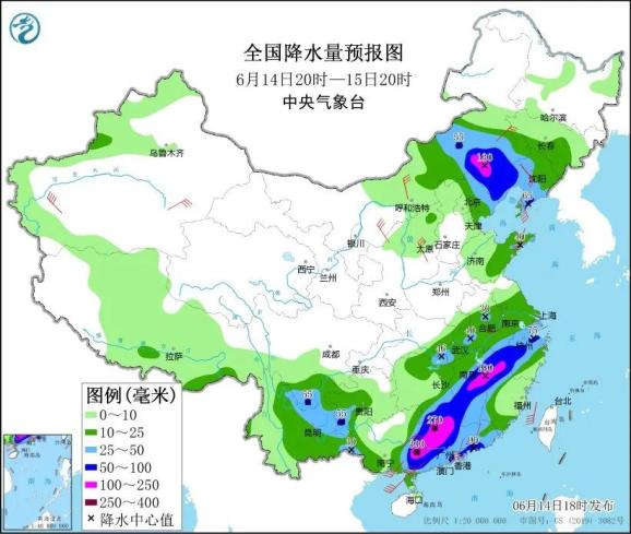 14日20时至15日20时,广东中西部、广西东部、湖南南部、广西中北部、浙江中部等地部分地区暴雨至暴雨。温馨提醒:台风“蝴蝶”登录后,华南江南暴雨风险高。华北内蒙古等地有强降水和强对流天气。公众应高度重视气象局发布的最新预报和预警信息,及时调整出行计划,避免前往山区、岛屿和沿海危险地区。