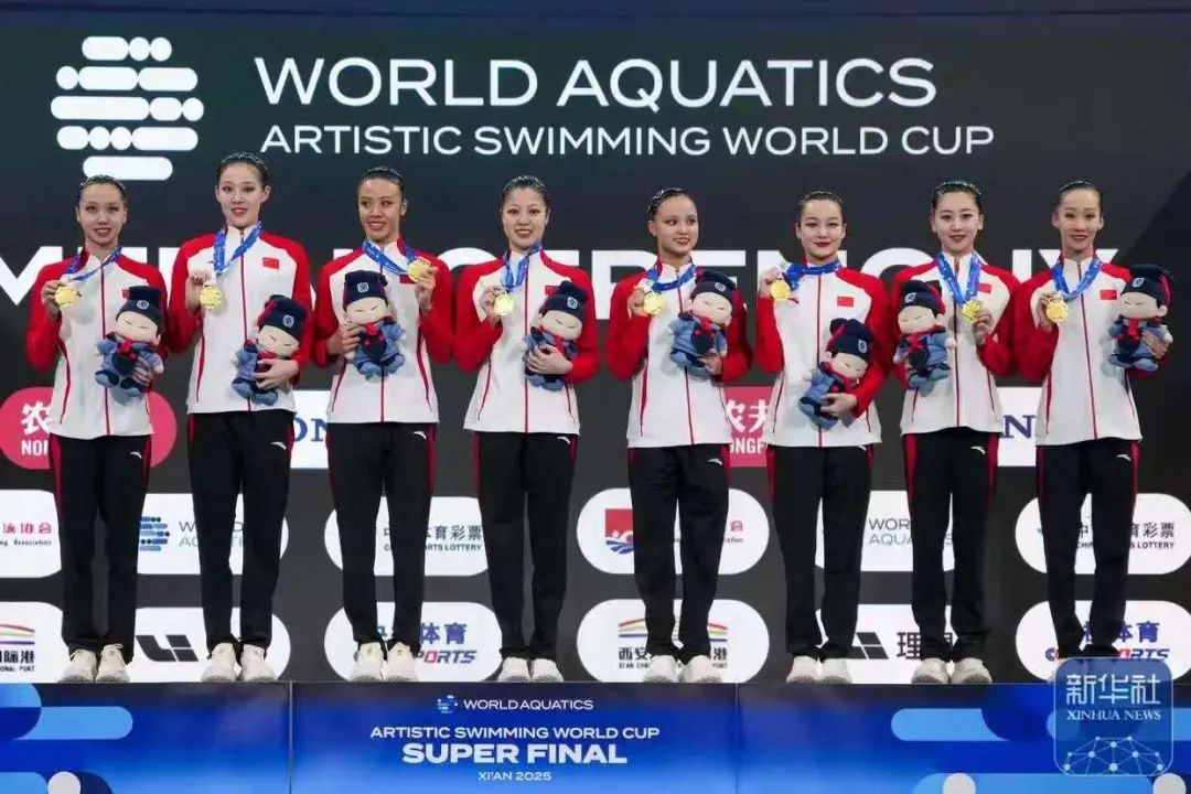 ◆ 中国队于14日在西安举行的2025年花样游泳世界杯总决赛中获得冠军。