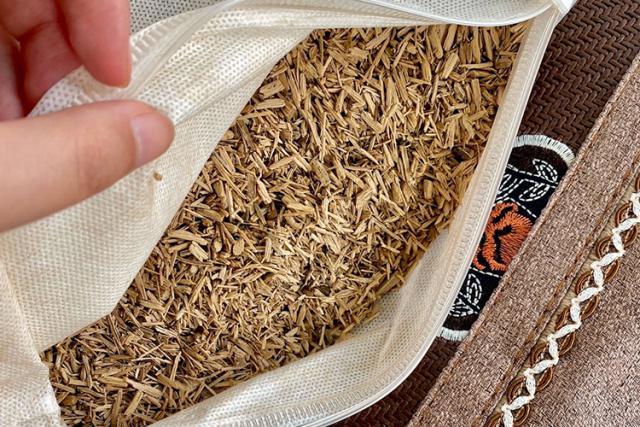 她们做这个沉香枕头的原料,都来自于自家种植园已结香的沉香料,而且所有的选择都是窨藏 3 一年一度的沉香老料,香味更加稳定,浓郁。