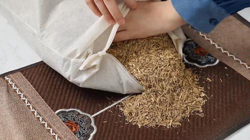 市场上大部分都是用沉香粉做香包入枕,与其它香料混合,我们这款一打开,沉香木碎就倾斜下来,市场上很少见。