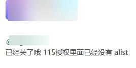 115 网盘紧随其后,关闭了对。 AList 的 API 授权。
