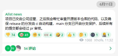 机哥看到最近有些,给了一些。 AList 为代码做贡献的开发者, AList 复制到自己的仓库继续维护,并保持开源。