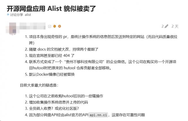 AList 负责人和开发者,从一开始就不打算和用户公开,要卖掉项目这件事。