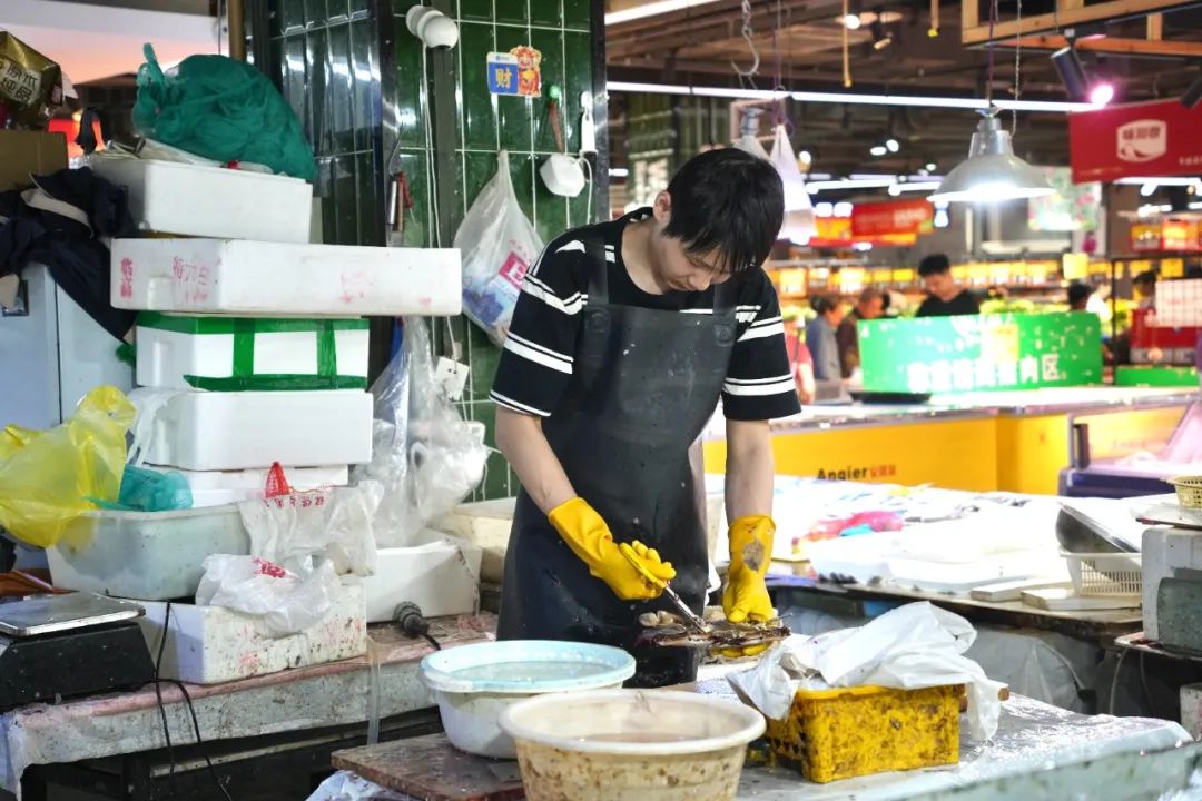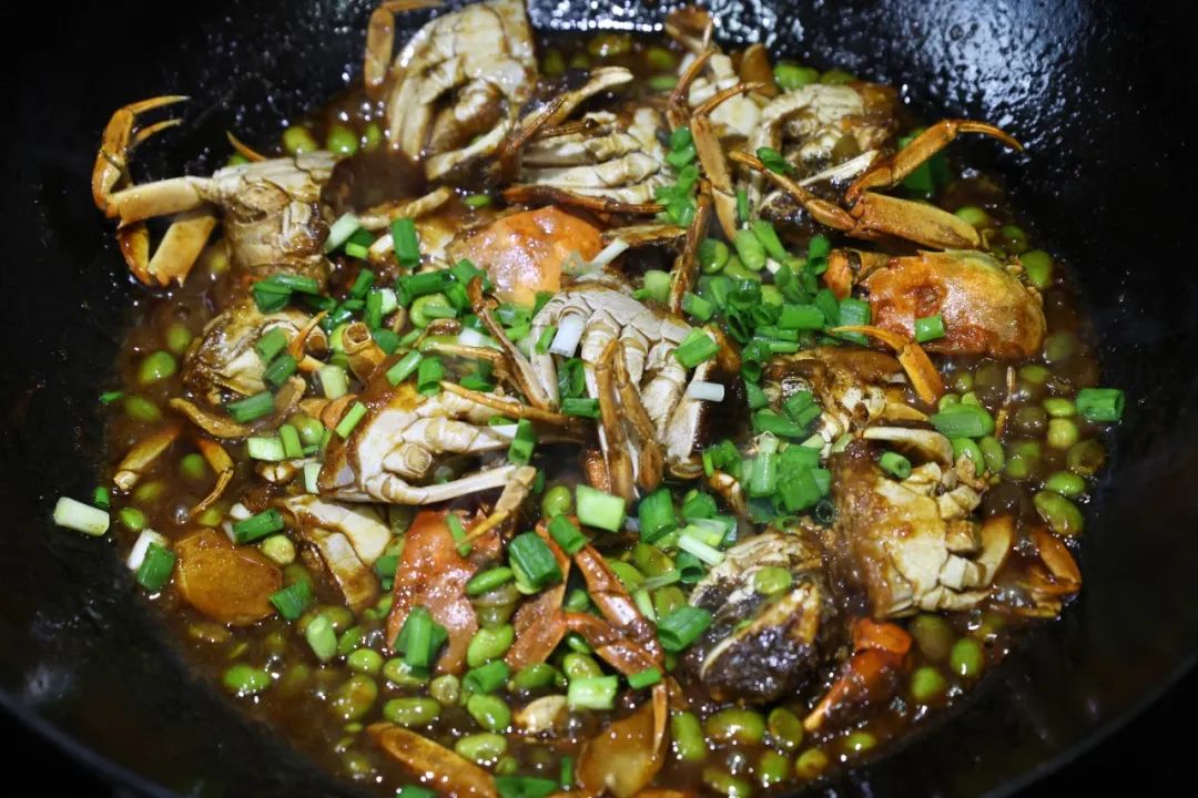 顾客侯先生在精心挑选的同时,分享道:“这是江南的一道特色美食。把螃蟹洗净切开,蘸一点粉,和年糕一起炒。味道鲜美,直接填满!”