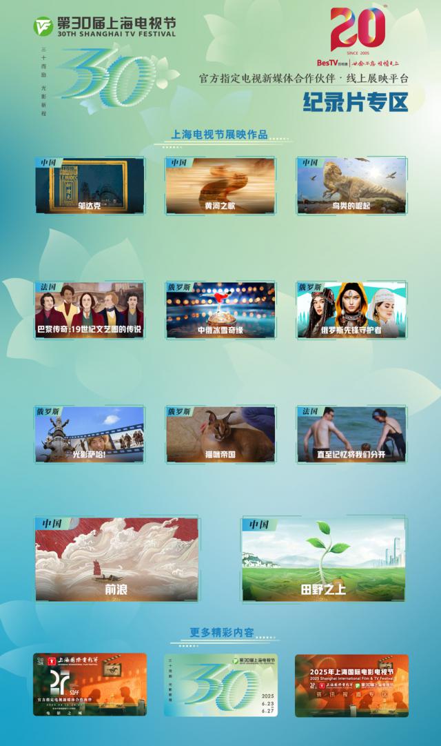 6 月 13 日至 22 日,第 27 上海电影节会议期间 10 天;6 月 23 日至 27 日,第 30 上海电视节无缝衔接。百视通作为电视新媒体的官方合作伙伴和在线展示平台,也将正式开始与上海国际电影电视节八年来的第七次深度合作,让观众在家一起参加光影合同。