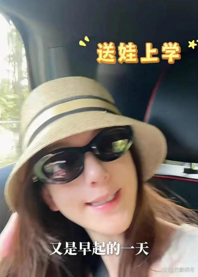 早饭后,她戴上墨镜帽,亲自开车送大女儿上学。