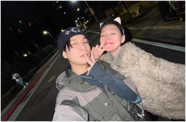看见她紧贴着派翠克的肩膀,而派翠克则比较了派翠克。 " YA " 手势,似乎是在深夜陪伴小家伙。 S 共同放松,两人合影互动的画面温馨愉快。
