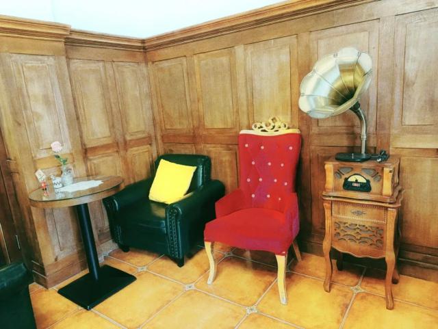 慕兰咖啡厅的室内设计以民国西方风格为主,复古吊灯、木桌椅、留声机与老照片相得益彰,让人感觉仿佛瞬间穿越到了老北平的咖啡厅或者大上海的洋行,都是怀旧大片。