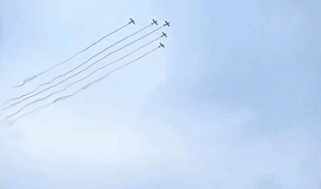 五架飞机从扬州体育公园体育场掠过