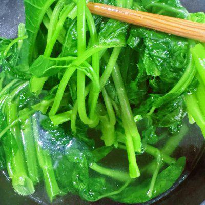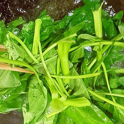 空心菜只需在水中煮一分钟,不能超时,否则青菜不嫩。 这种调料汁和其它青菜混合也是可以的,一个字,鲜。