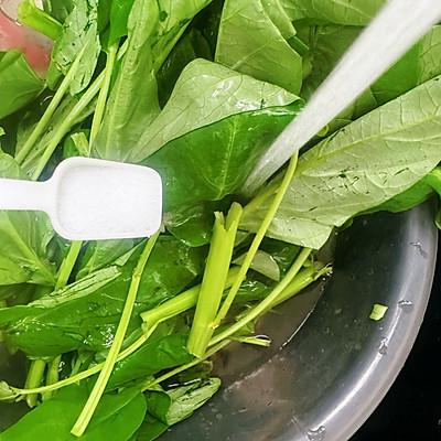 3、摘下空心菜,放一小勺盐泡几分钟。