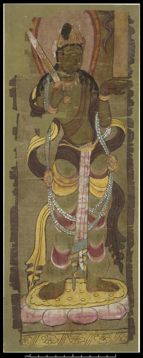 敦煌遗画《宝刀文殊菩萨》藏于大英博物馆。