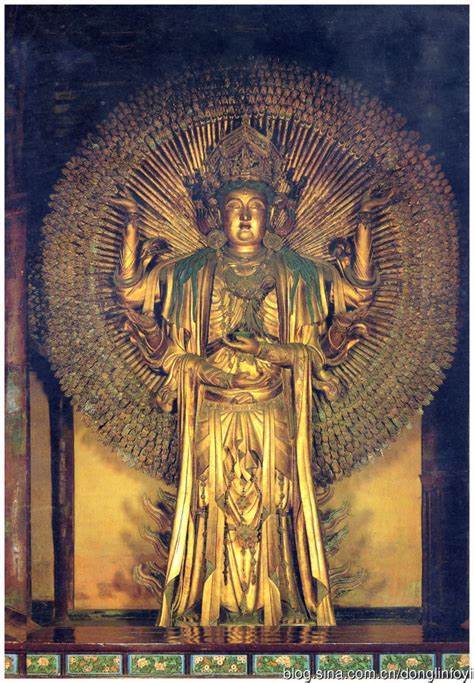 一个身体,一个身体,一个身体,一切都是从身体开始的;同样的想法可以用不同的艺术形式(事物)在不同的维度上表达出来。在观世音菩萨的千臂中,每一只手掌都有一只睁开的眼睛,但在文殊菩萨这里,却是千佛钵和千佛的化身。