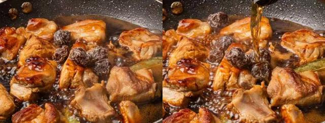 4. 在没有食材的情况下加入清水,加入话梅、米醋、黄酒,小火炖煮。 40 分钟。