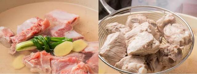 1. 将排骨洗净,加入姜蒜焯水,取出沥干水分备用。