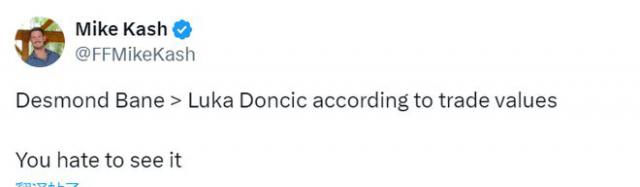 新闻人 Kash “从交易价值来看,贝恩高于东契奇,你讨厌看到这一幕。”