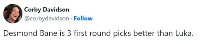 独行侠季票持有人 Corby Davidson 感慨地说:“贝恩比东契奇多值 3 个首轮。"