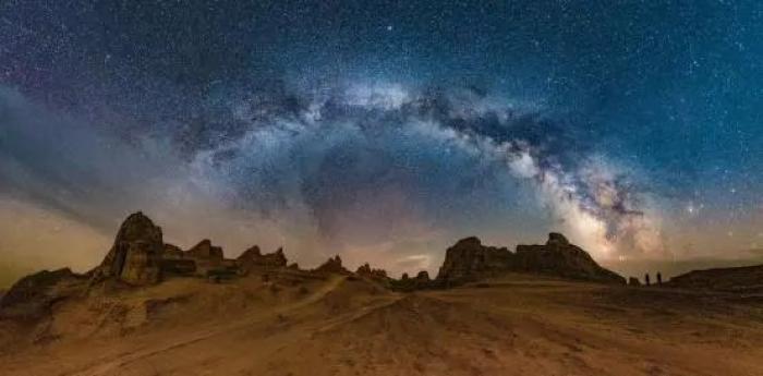 银河拱门出现在冷湖俄博梁雅丹星空。