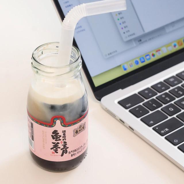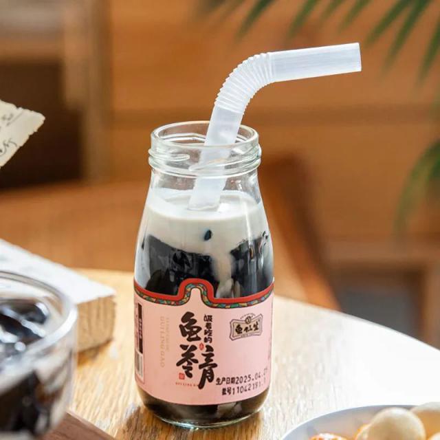 玻璃瓶一打开,吸管一插就像奶茶一样吸着喝,不用空手用勺子舀,真的很方便。