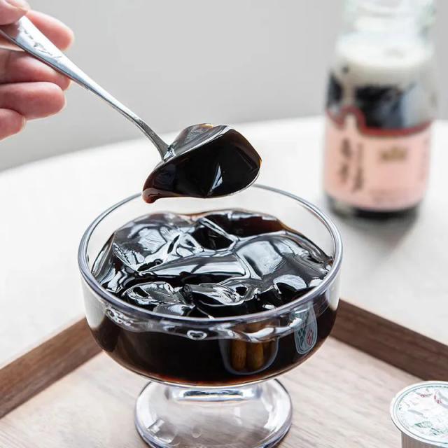 因为煮草本材料比较多,所以龟苓膏的膏状也比较深黑。