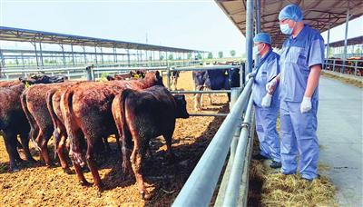 宁河海关驻场人员现场控制种牛。 照片由天津海关提供