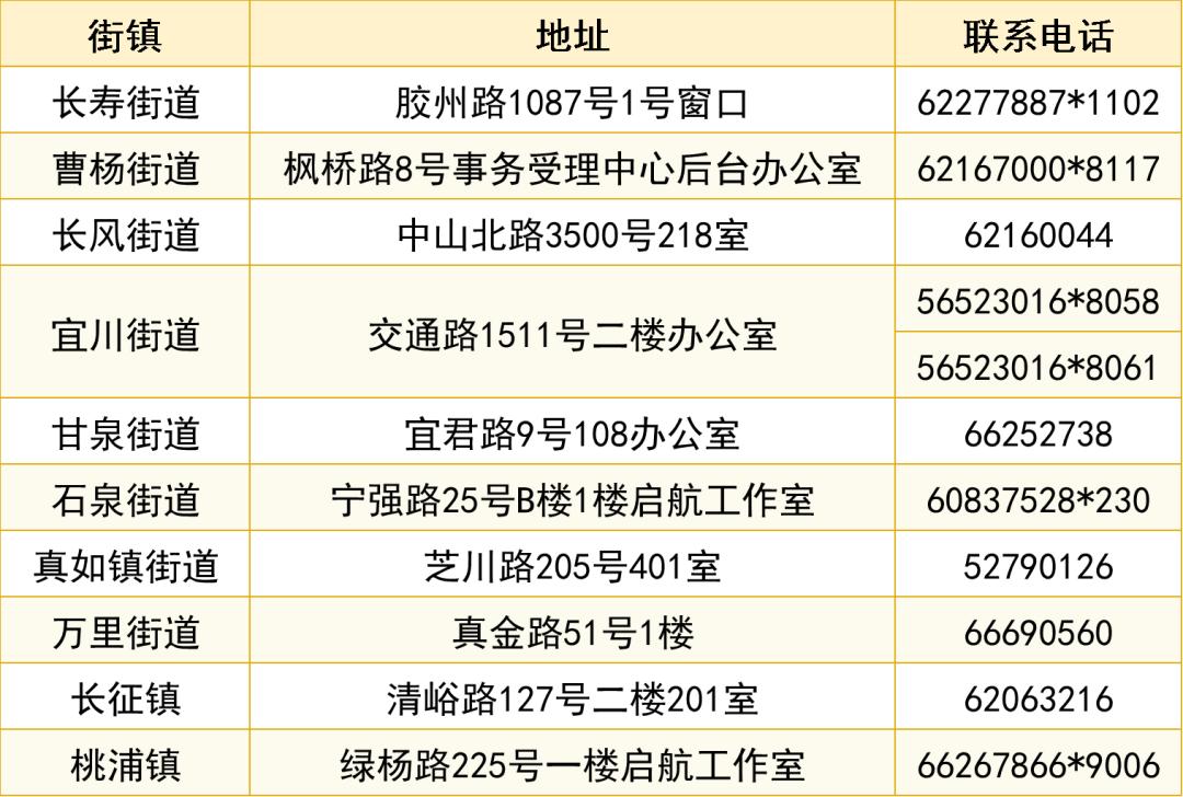 各镇受理地址及咨询电话