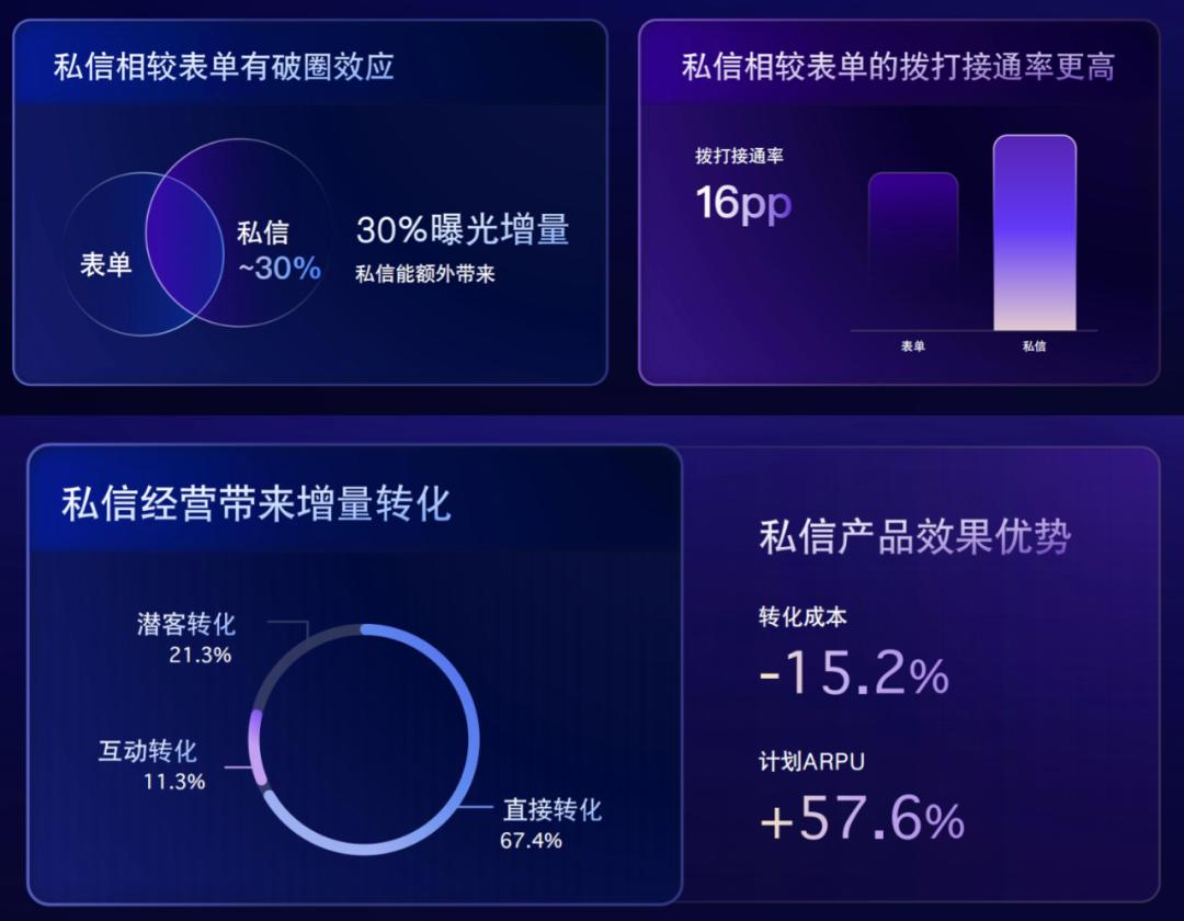 韩辉表示,商务私聊并非占用表格资源,而是开发了“纯增量”,可以带来额外的30%曝光,商业私聊的CRM拨通率会比表格客户高16%,也就是每100条线索可以多打16个电话。