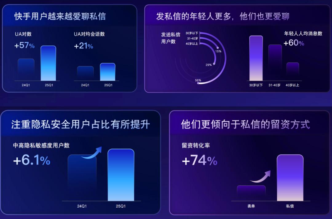 他说:“我们快手的顾客真喜欢聊天。”“在2025快手商业私聊会上, Aautorapper磁力引擎线索产品负责人韩辉提到,过去一年在Aautorapper上聊天的用户数量增加了57%,客户每次聊天的消息数量也增加了21%。 而且更年轻的客户会更喜欢通过线上交流和品牌联系。轻松的对话氛围有助于降低心理防线,循序渐进的交流过程也有助于积累信任。