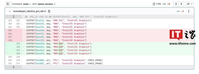 IT 世家 6 月 16 日本消息,英特尔员工 Jordan Justen 上周向 Mesa 驱动程序提交了更新合并申请, 4 个预留 "BMG" ( Battlemage ) PCI ID 确定为对应 BMG G31,这也意味着至少会有。 4 这款显卡是基于此款 GPU。